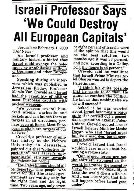 In other words, according to Marmorstein, Iran can easily reach Europe with its ballistic rockets as well. And that’s why Iran is not only a threat to Israel, but also to the whole world. However, I do recall having read something different at one point.
